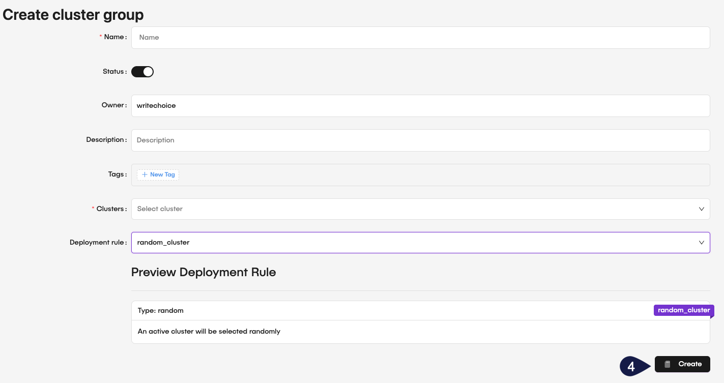 - Name: Provide a unique name for the cluster group.